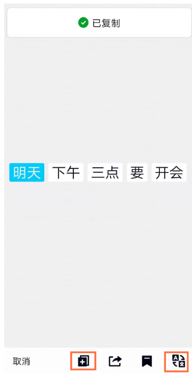 点击下方的复制按钮,即可复制该文字内容,页面会提示已复制,你可以选择分享发送给好友,