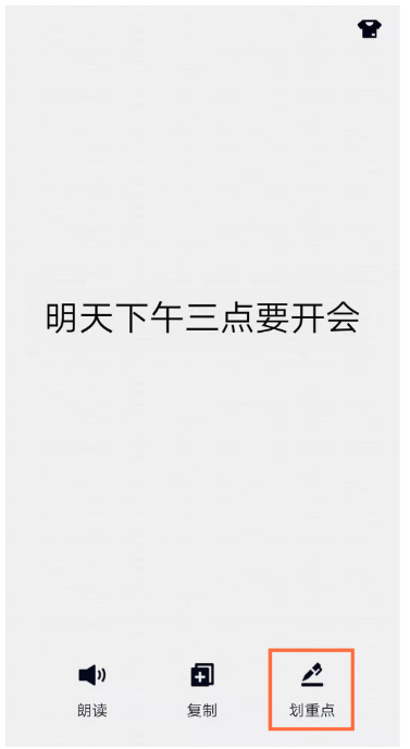 这时会弹出菜单选项,点击右下角的【划重点】,如图,