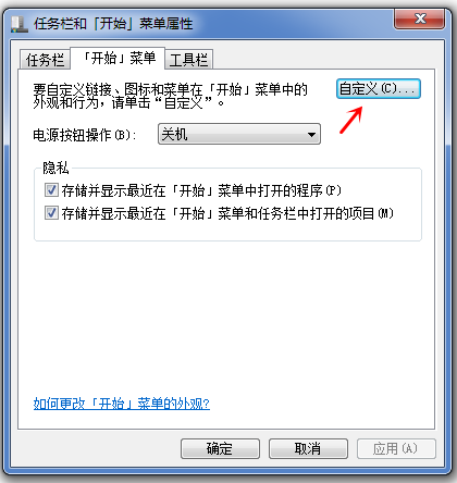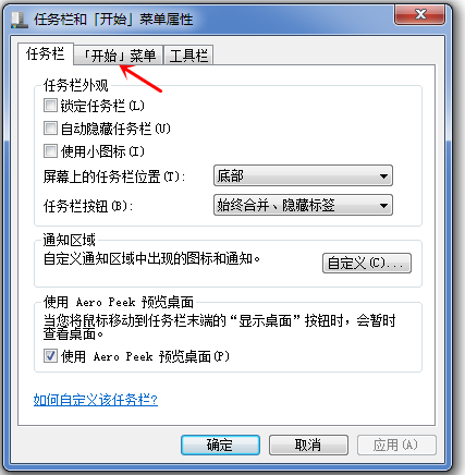 打开【任务栏和开始菜单属性】窗口,点击【开始】选项,