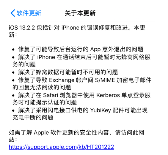 iOS 13.2.2更新内容