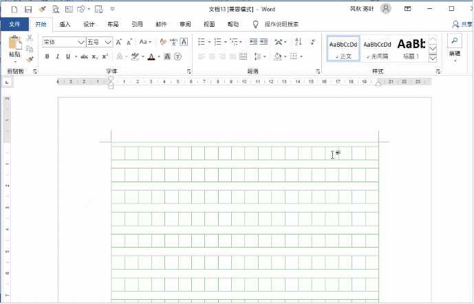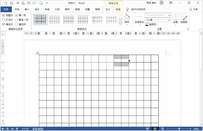 4) 再次选择旁边的“田字格”,按F4键重复虚线效果,以此类推,完成全部表格的“田字格”设定;
