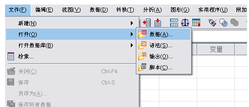 在上方菜单栏中点击【文件】——【打开】——【数据】,如图,
