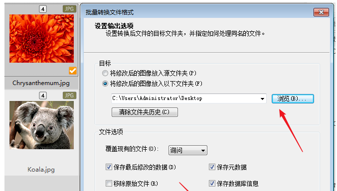 点击【浏览】,选择图片修改之后的保存路径,再设置相关文件选项,继续下一步,