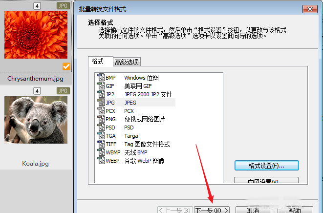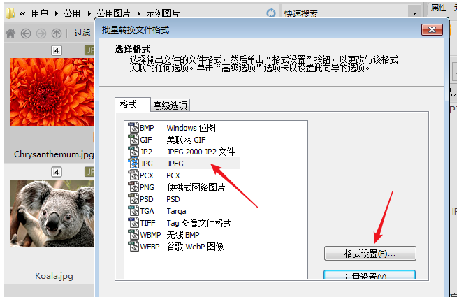 打开窗口,选择其中一种文件格式,如果你只需要压缩图片,那就选择原文件格式,然后点击【格式设置】,