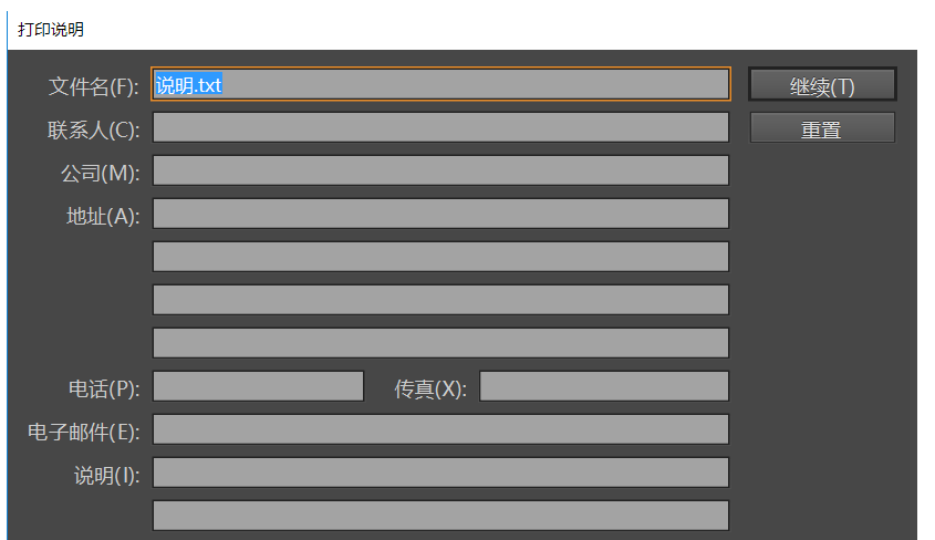 点击【打印设置】,填写打印说明,如图,然后点击【继续】,