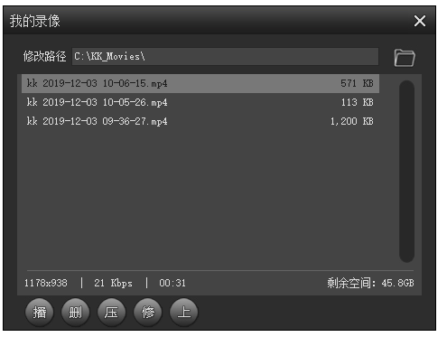 使用KK录像机进行录屏,大家可以自行设置视频清晰度,当然了,画质越高,视频文件体积越大。为了不影响后续传输分享,录屏结束,你可以通过KK录像机自带的压缩功能来处理视频,具体操作请看下文!