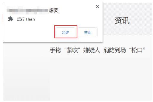 3、跳出对话框,如果想要运行Flash,点击【允许】,
