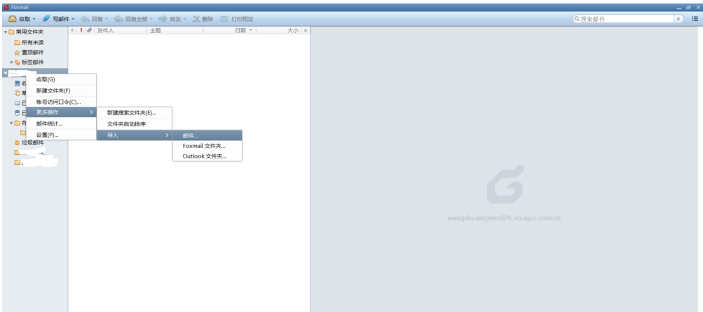 如果后期需要导入,鼠标右击【收件箱】,点击【更多操作】——【导入】——【邮件】, 选择之前导出的.eml邮件,