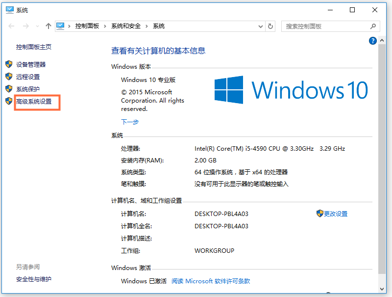 鼠标右击【我的电脑】或者【计算机】,弹出菜单,选择【属性】,进入如下界面,然后点击【高级系统设置】,
