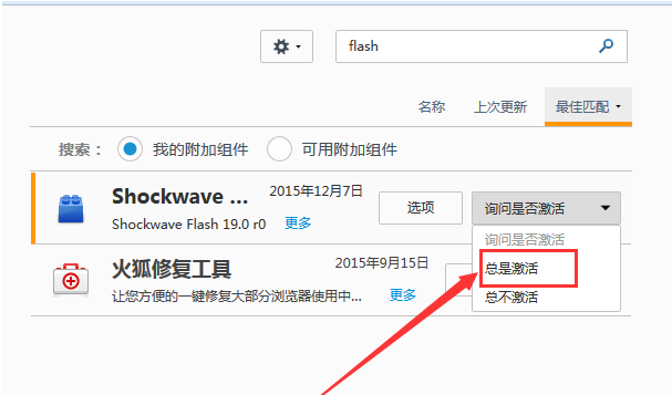 如图,点击【询问是否激活】选项,选择【总是激活】,选好之后自动保存,如此一来,访问其他网站时就会自动激活Flash插件,