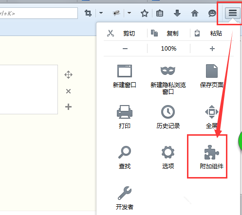 更改flash插件的属性。点击页面右上角的菜单按钮,选择【附加组件】,