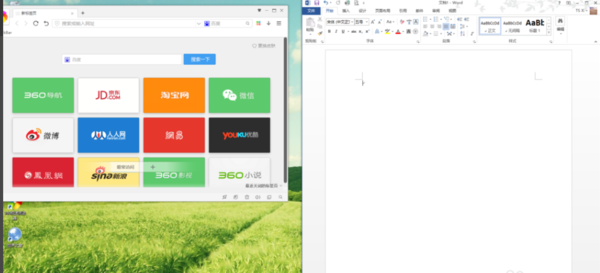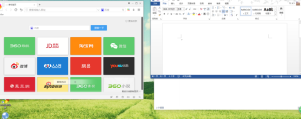 如果向下拖动Word窗口,出现如图提示框,然后松开鼠标,窗口位置固定,占据了桌面的一半空间,
