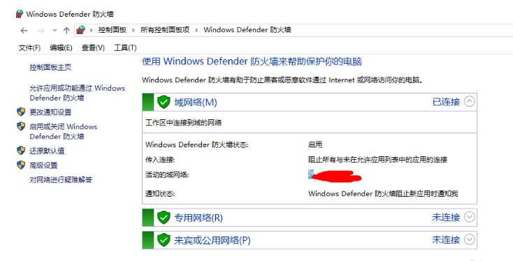 进入以下界面,在左侧点击【允许应用或功能通过Windows Defender防火墙】选项,