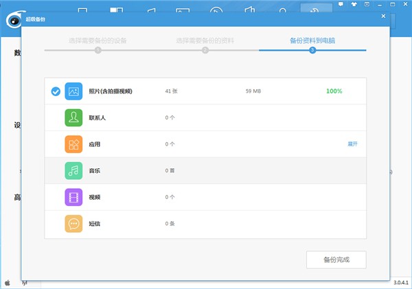 软件开始备份资料到电脑,耐心等待即可。