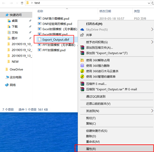 鼠标右击DBF文件,弹出菜单,点击【属性】,进入文件属性界面,