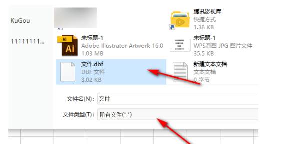 弹出对话框,找到对应的DBF文件,设置【文件类型】为所有文件,点击打开,