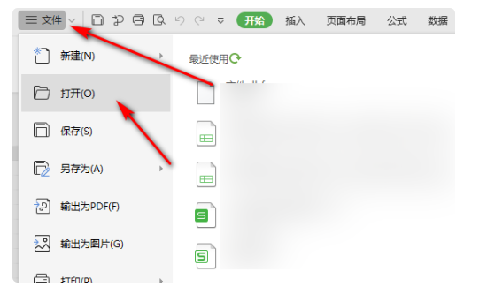 新建一个Excel工作簿,进入界面,在左上角点击【文件】选项,然后选择【打开】,