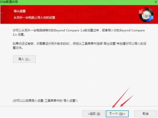3、接着,beyond compare会弹出“导入设置”的窗口,在该窗口继续点击“下一个”的按钮。