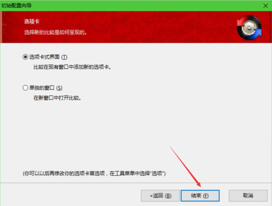 4、完成上一步操作后,在“选项卡”的窗口中,点击“结束”按钮,即可把beyond compare提示过期的问题给解决。