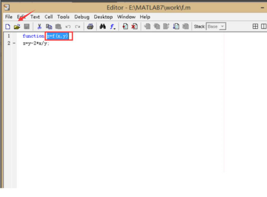 2、然后用户手动编写一个函数。这里,本人以常用的一个较为简单的函数为例。用户将函数编写完整以后,复制如下图的函数代码,再点击matlab公式编辑器功能属性栏的“保存”按钮对函数进行有效保存。