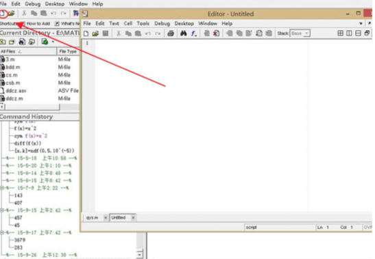 1、首先,用户需要打开matlab公式编辑器。点击编辑器主界面左上角的“程序编辑窗口”,以调用函数文件。