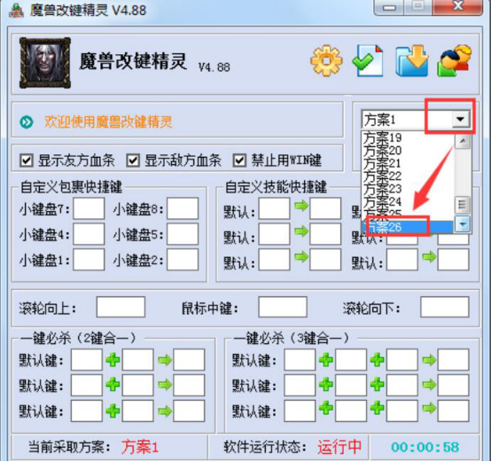 5、魔兽玩家,可以根据自己玩的经验制作出不用的方案来应对敌人。改键精灵一共可以设置26种不同的方案,设置每一种方案都要记得点击“保存”按钮,这样方案才能成功保存。
