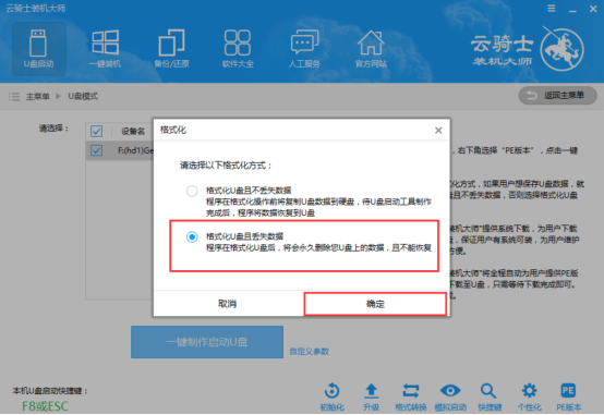 5、在弹出界面,根据自己需要选择格式化方式,如下图: