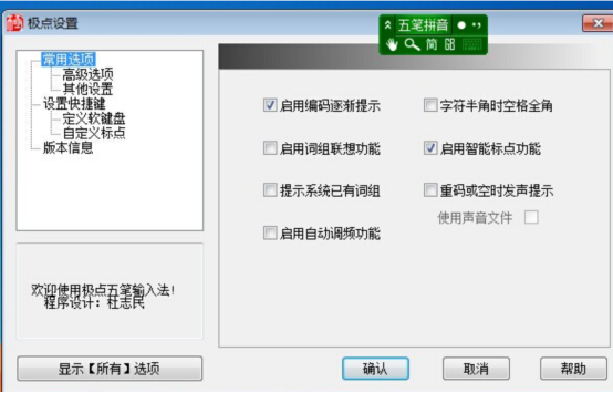 2、点击“极点五笔输入法”图标单击右键,界面如下: