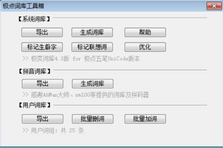 这里有三个词库:分别是系统词库、拼音词库、用户词库,在每个词库中选择自己需要的内容即可。