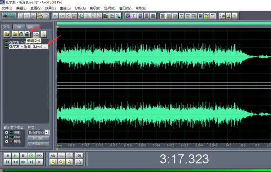 5、点击上一步复制出来的第二个文件音乐,当“编辑文件”的快捷按钮高亮后,cool edit pro就可以正式进行音乐的剪辑了。