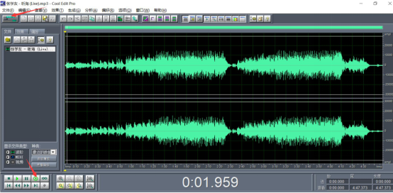 3、点击cool edit pro左上方的播放音乐按钮和左下方的“播放至结束”按钮,进行音乐的试听,确认是否选对了音乐。
