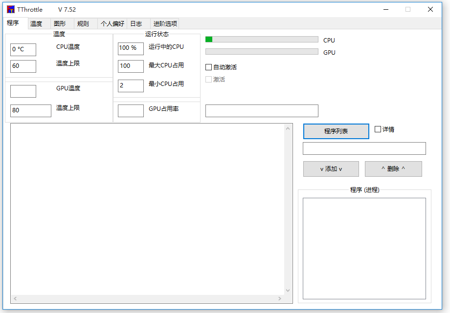 TThrottle是一款小体积的电脑温度监控软件,它可以实时监控CPU、GPU的温度,并进行智能降温,防止因为温度过高造成电脑损坏。你可以通过查看温度折线图,了解电脑温度在一段时间内的具体变化;另外,你还能够自行创建规则,一旦CPU、GPU超过设定温度,软件即可作出减速、警报、关机、重启等行为。