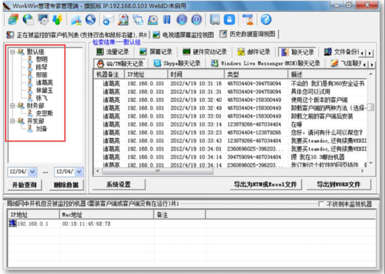 4、上述的管理端和被管理端的Workwin安装完毕后,只要双方的电脑打开,管理端Workwin便能对被管理端(员工端)进行实时监控了。