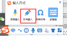 5、使用搜狗拼音输入法中的手写输入,点击搜狗输入法的“键盘”图标,选择“手写输入”,便可以使用电脑手写板手写文字了,如下图: