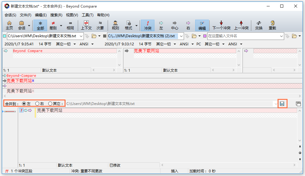 如何使用Beyond Compare合并文件?
