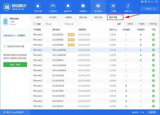 3、为什么说众多的苹果刷机助手软件中爱思助手比较好?因为它除了可以一键刷机,还可以让用户自由选择想要升级的固件。点击“刷机越狱”的“固件下载”即可。操作起来很简便。