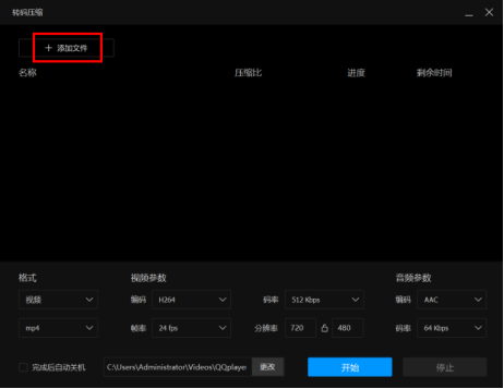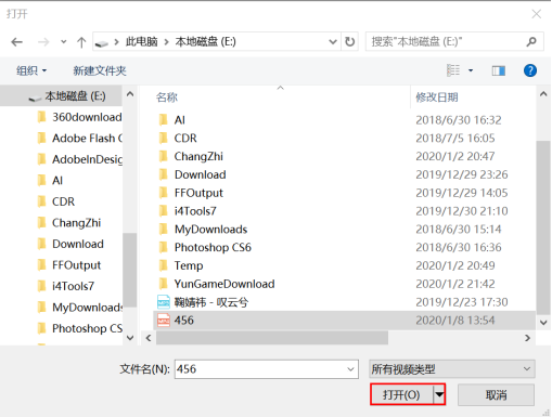 2、在弹出界面点击“添加文件”,然后选择视频,点击“打开”,如下图: