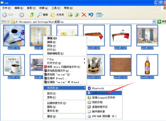 1、将需要转换的文件全部选中,然后右键选择发送到pdfFactory。