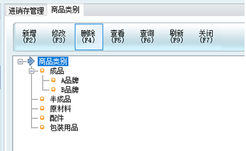 点击【商品类别】,进入窗口,你可以对商品进行细致划分,包括成品、半成品、原材料、配件等等,如下图: