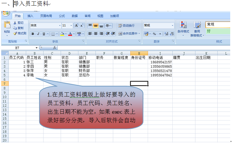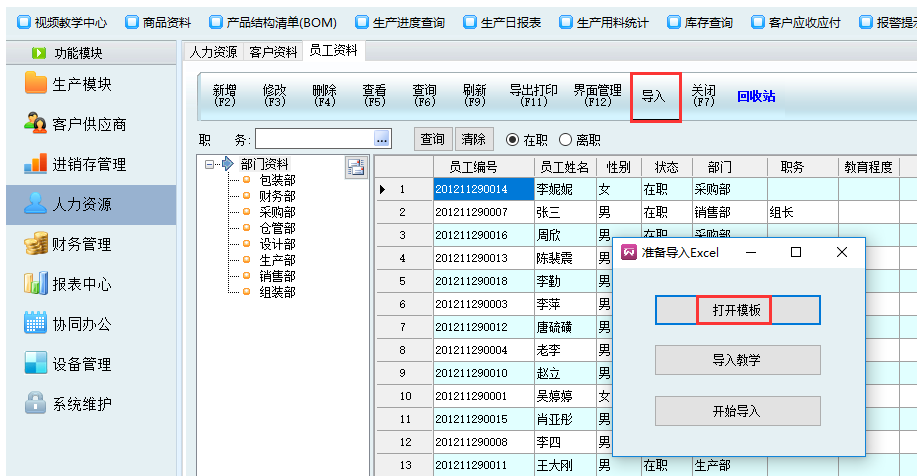 员工资料整理结束,回到软件界面,直接点击【导入】——【准备导入Excel】——【开始导入】,