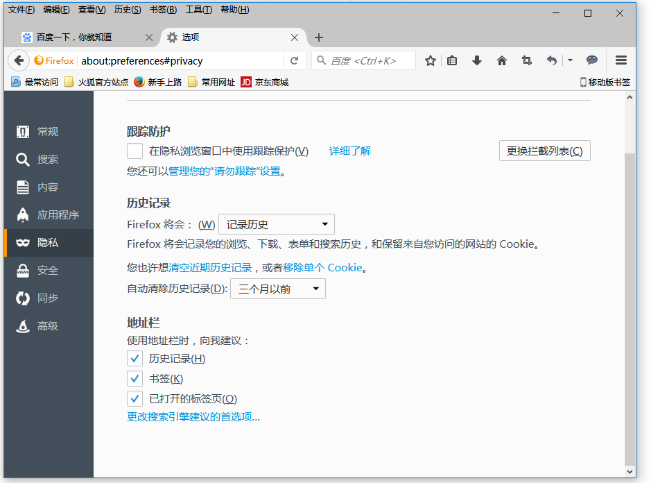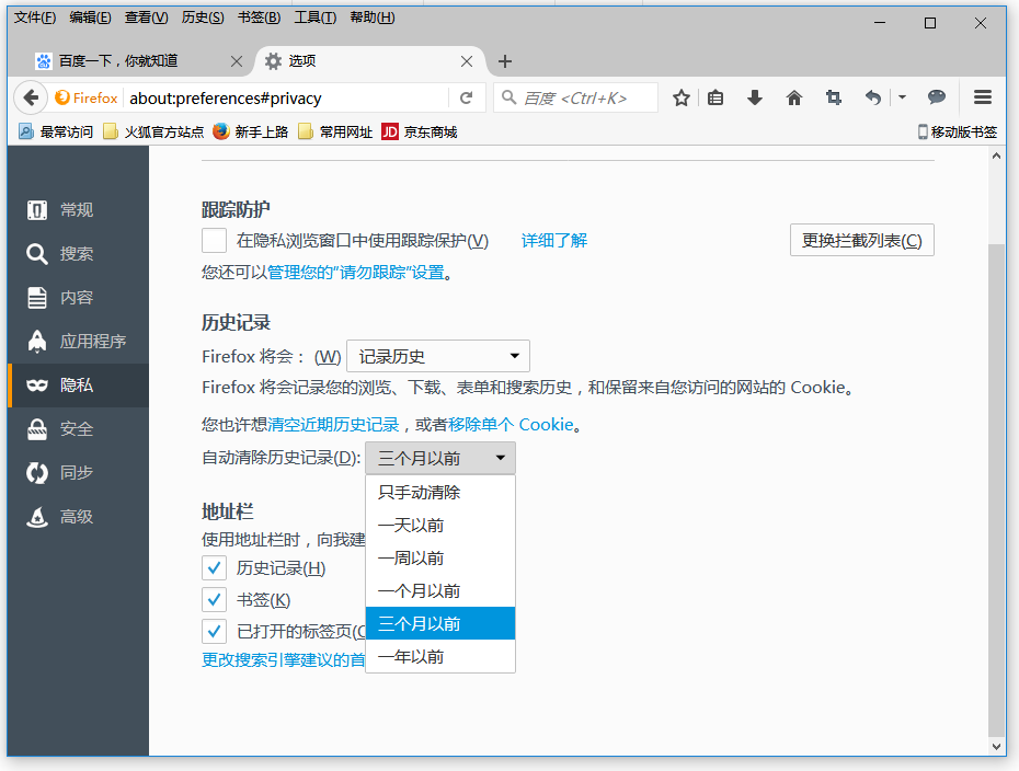 进入界面,如图,在左侧点击【隐私】选项,选择【自动清除历史记录】,