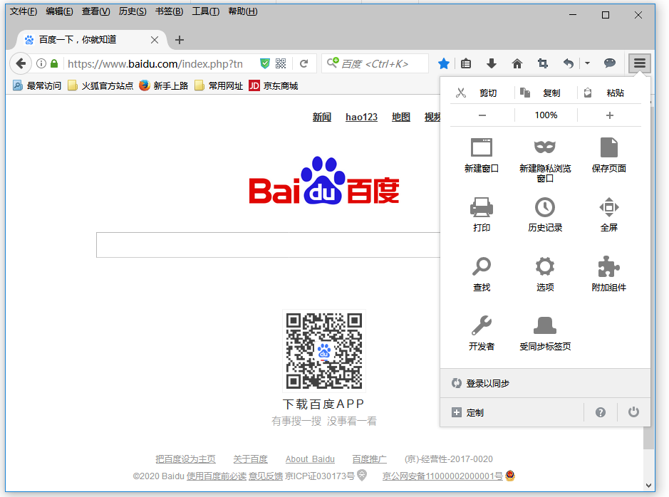 打开火狐浏览器,进入页面,如图,Firefox并不显示菜单栏,鼠标右击顶部任意位置,选择【菜单栏】,即可调出菜单栏,