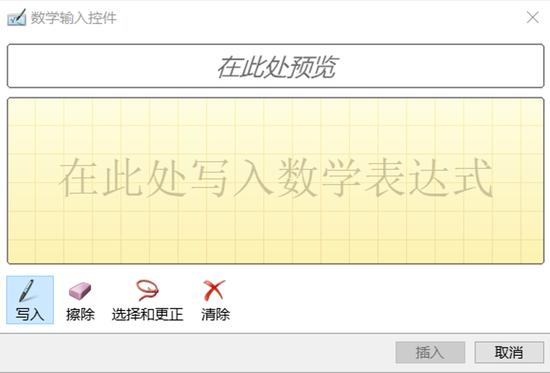 打开墨迹公式编辑器,如图,在黄色区域写入数学公式,软件控件会自动识别相关内容,并在窗口上方显示识别结果,