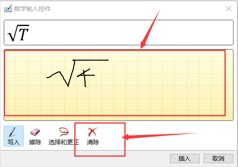 如果识别不准确,可以点击下方的【选择和更正】按钮,选择正确选项;如果公式输入错误,你可以点击【清除】按钮,然后进行重写;如果只是部分错误,可以点击【擦除】按钮,