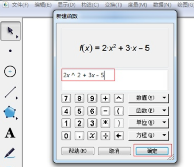 2、在弹出的“新建函数”界面输入函数方程式,如下图: