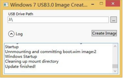 6、添加程序界面出现Upadte finished表示添加程序完成,接下来将U盘插在USB3.0接口安装驱动就可以了,如下图: