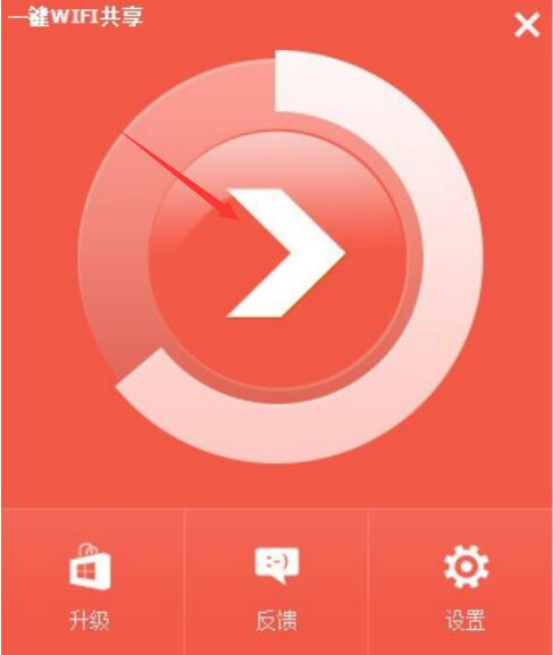 1、首先,用户点击一键wifi共享的软件快捷图标,启动该软件。并点击中间的按钮即可进入创建wifi热点的界面。