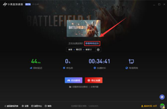 2、进入小黑盒加速器界面后,随意选择需要加速的一款游戏进行加速,然后点击“查看网络监控”的功能项目。