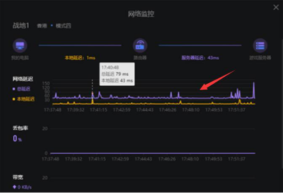 3、网络延迟异常怎么办?用户可以从小黑盒加速器的网络监控界面中实时看到网络延迟的“总延迟”和“本地延迟”的变化曲线。一般来说,如果本地延迟的数值或者变化的幅度比较大,那可以认为是本地网络问题导致的延迟异常。