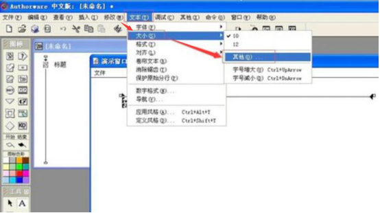 4、如果需要修改当前文字的大小,可以点击authorware菜单栏“文本”中的“大小”,然后再点击“其他”来输入字号的大小。
